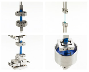 製品の耐久性を評価する試験では、より高い周波数を使用することで試験時間を短縮しながら同じ数の繰り返し負荷をサンプルに与えられます。試験機の動的モーターを使用し、ホルダーを交換することで引張、圧縮、せん断、曲げ方向のモードの疲労試験を可能にします。疲労試験時のサンプル長さの変化に自動で追従し、常に一定荷重や一定ひずみの動的負荷を与えるよう制御します。