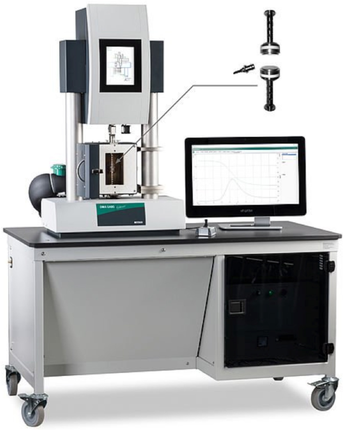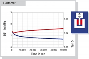 フレクソメーター専用装置としてガボメーターシリーズを用意していますが、高荷重動的粘弾性EPLEXOR2000N〜8000NのラインアップISO4666-3、ASTM D623に準拠したフレクソメーター測定の兼用機にアップグレードできます。
